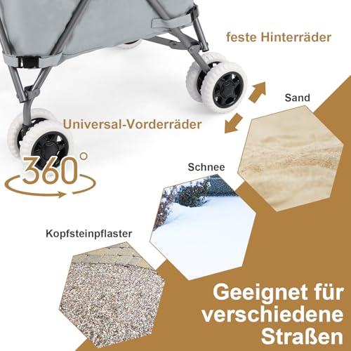 【Flexible Bewegung】 Dieser praktische Einkaufswagen ist mit 2 universellen Vorderrädern und 2 festen Hinterrädern ausgestattet, die rutschfest, stoßfest und leise sind. Und diese Räder sind für verschiedene Straßen wie Sand, Schnee, Kopfsteinpflaster oder andere Straßenverhältnisse angemessen, um großen Komfort zu bieten.