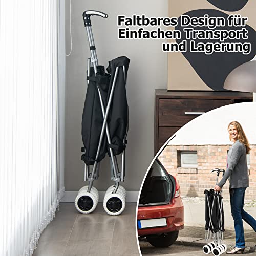 COSTWAY Faltbarer Einkaufstrolley mit Rädern, Kapazität 90 L/55 kg, Handwagen mit Abnehmbarer Oxford-Tasche…