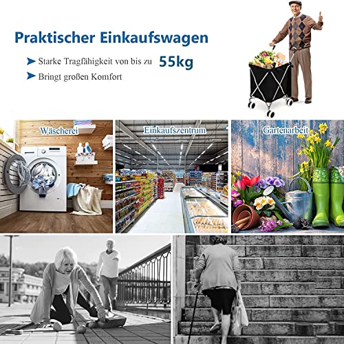 【Flexible Bewegung】 Dieser praktische Einkaufswagen ist mit 2 universellen Vorderrädern und 2 festen Hinterrädern ausgestattet, die rutschfest, stoßfest und leise sind. Und diese Räder sind für verschiedene Straßen als Sand, Schnee, Kopfsteinpflaster oder Auswahlmöglichkeit Straßenverhältnisse im Rahmen, um großen Komfort zu bieten.