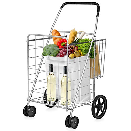 【Großer Stauraum und zusätzlicher Korb auf der Abseite】 Dieser Mehrzweckwagen hat einen Korb von 45,5 cm (L) x 56 cm (B) x 95,5 cm (H), der ausreichend Platz bietet, damit Sie fast alles verstauen können, was Sie wollen. Außerdem ermöglicht Ihnen der zusätzliche Rückenkorb, persönliche Gegenstände beim Einkaufen jederzeit leistungsfähig aufzubewahren.