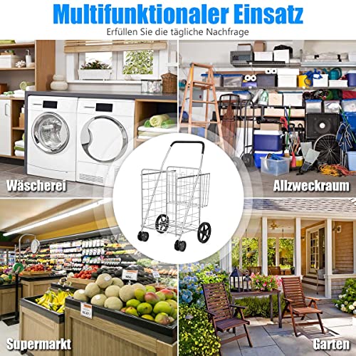 COSTWAY Klappbarer Einkaufstrolley, 40kg, 100L+22L, Einkaufswagen mit Universalrädern, Rollwagen mit 2 Körben, Tragbarer…