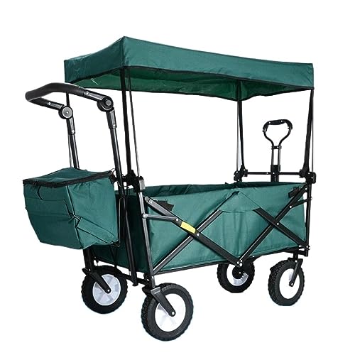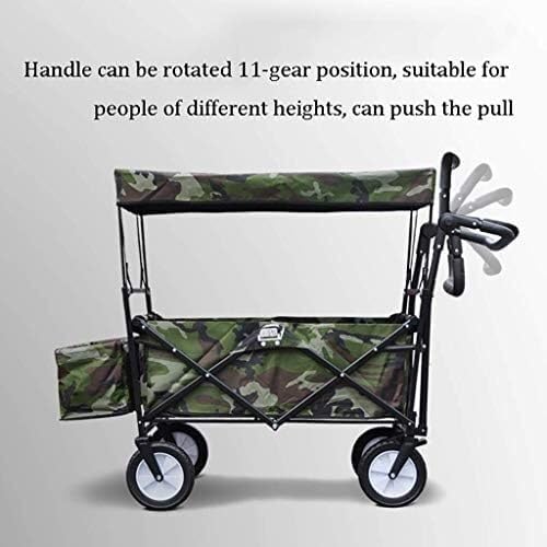 CRBUDY Campingtrolley, zusammenklappbarer Gartentrolley mit Überdachung, robuster Wagen, tragbarer Einkaufswagen für Camping im Freien, Schiebe-/Ziehwagen, Transport im Freien (F)