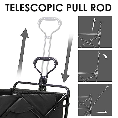 Großes Fassungsvermögen Großer Innenraum mit robusten Rahmen trägt bis zu 60 kg. Der zusammenklappbare Wagen ist perfekt für den Transport von Einkäufen, für Familienausflüge oder als Warenwagen und ideal für Ausflüge an den Strand, in den Garten, in den Park, zum Camping, für Sportveranstaltungen im Freien oder einfach zum Transportieren von Dingen.
