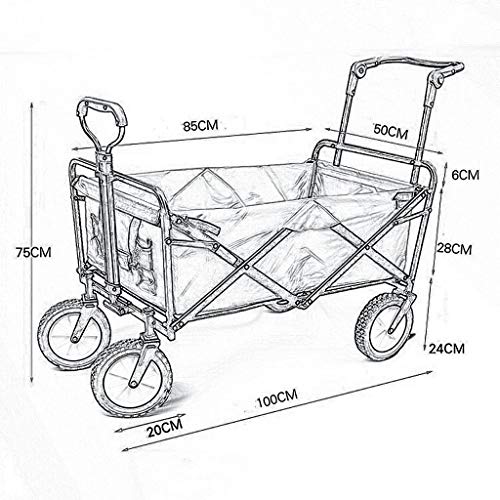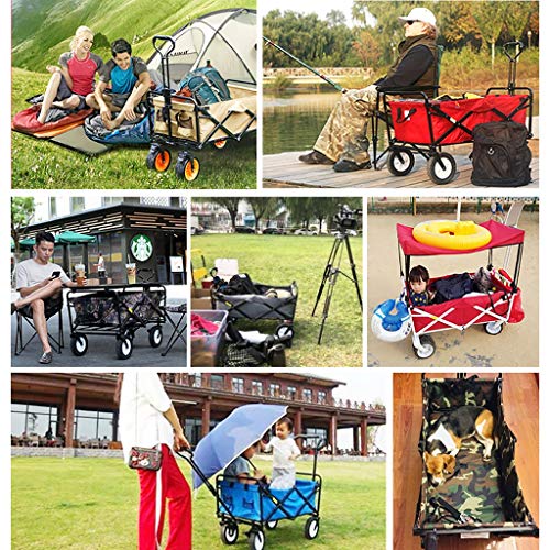 CRBUDY Zusammenklappbarer Gartenwagen mit Überdachung, robuster Wagen, tragbarer Multifunktions-Einkaufswagen für Outdoor-Camping, Angeln, Schiebe-/Ziehwagen mit 4 Rädern, Tragkraft: 80 k