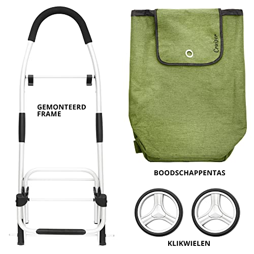 Leicht, fulminant, abgehärtet, kompakt, wasserabweisend und sehr leicht zu falten: Was erwarten Sie mehr von einem Einkaufswagen? Das Stützen schwerer Taschen oder anderer Gegenstände nach dem Einkaufen gehört mit dem starken ‚faltbaren‘ Einkaufswagen von ShoppingCruiser der Vergangenheit an. In diesem edlen Einkaufswagen mit wunderbar flexiblen Rädern können Sie bis zu 30 Kilogramm Lebensmittel transportieren. Bereit zum Einkaufen? Einfach zusammenfalten und kompakt zu Hause oder im Auto aufbewahren. Super-einfaches Zusammen- und Auseinanderfalten: in 5 Sekunden einsatzbereit. Dieser kompakt verstaubare Einkaufswagen (zusammengeklappt handkehrum 50 x 35 x 9 cm) ist mit einem doppelten Verriegelungssystem ausgestattet. 1.) Klappen Sie den Griff auf und sichern Sie ihn mit zwei Schiebern. 2.) Dann klappen Sie das Fahrgestell aus, bis Sie ein ‚Klicken‘ spüren. Bereit! In abzüglich als 5 Sekunden sind Sie bereit, einkaufen zu gehen. Wasserabweisende und abnehmbare Einkaufstasche (max. 30 Kilo Lebensmittel). Die geräumige Einkaufstasche ist aus dickem Nylon hergestellt. Dadurch ist der Sack nicht handkehrum sehr fulminant (bis zu 30 Kilo!), sondern auch sehr wasserabweisend. Sie können die Tasche auch vom Rahmen loshaken. Ideal zum Reinigen Robust, schön und leicht, schlagartig abgehärtet und leicht zu bewegen Gewicht handkehrum 1,7 kg dank des ausgewogenen und starken Aluminiumrahmens. Platt oder mit bis zu 30 Kilo Lebensmitteln beladen: ist immer perfekt ausbalanciert und braucht Ihre Hilfe nicht, um an Ort und Stelle zu bleiben Spezialhaken zur Befestigung an einem Einkaufswagen Ein pfiffiges Isoliert! Dieser Einkaufswagen ist mit zwei Haken ausgestattet, um ihn an der Vorderseite eines Einkaufswagens aufzuhängen Reißverschlusstasche für Ihre Brieftasche, Ihr Telefon und/oder Ihre Schlüssel An der Außenseite finden Sie eine Reißverschlusstasche mit einem stabilen Reißverschluss. Hier können Sie Ihr Mobiltelefon, Ihre Schlüssel und / oder Ihre Brieftasche einfach und leistungsfähig aufbewahren.