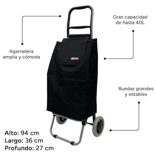 Dekohome Faltbarer Einkaufstrolley mit Rädern, großes Fassungsvermögen: 40 l, 2 große und stabile Räder, abnehmbare Tasche, leicht zu reinigen, 36 x 27 x 94 cm, Schwarz