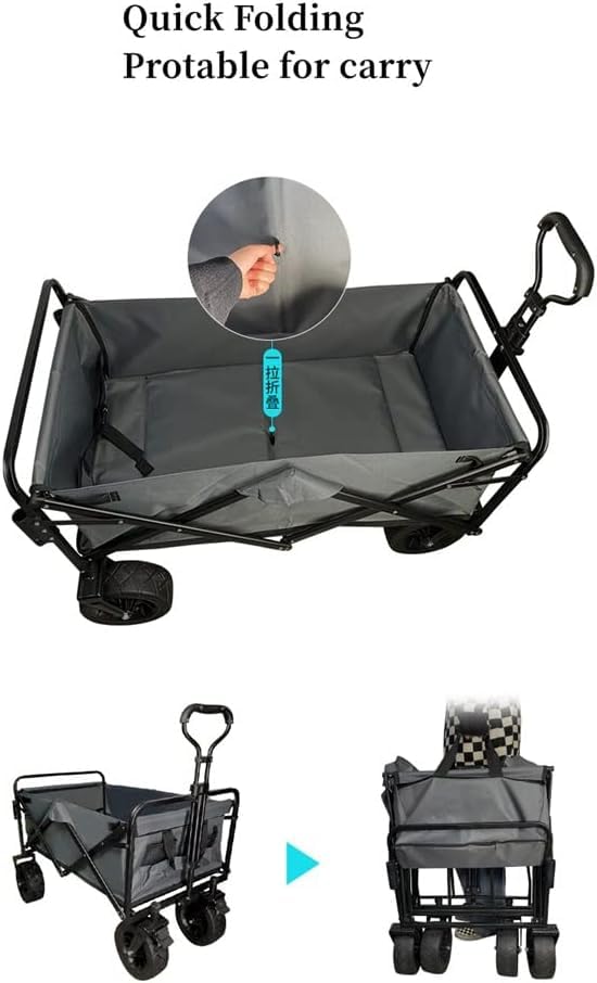 DOFFO Handwagen, tragbarer Einkaufstrolley für den Hausgebrauch, zusammenklappbarer Gartenwagen, robuster Wagen, Campingwagen, Picknickwagen, verstellbar (Blue 100 * 50 * 75Cm)