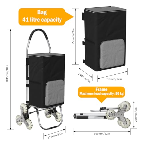 PROFI-TREPPENRÄDER: Ihr Upgrade-Einkaufstrolley Treppensteiger mit 6 Edelstahl-Dreiecksrädern (23cm) + Doppellager – Läuft auf Kopfsteinpflaster /Treppenhäusern reibungslos. 100% blockierungsfrei, 0% Radbruch. Endlich entspannt einkaufen – selbst mit schweren Tüten