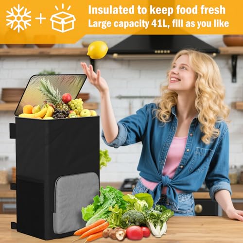 DROMEZ Einkaufstrolley Treppensteiger, Einkaufswagen mit Kühlfach, 50L Volumen, Hackenporsche mit 6 Rollen, 3kg Leichte Trolley Klappbar, Belastbarkeit 50 kg, Schwarz & Gray