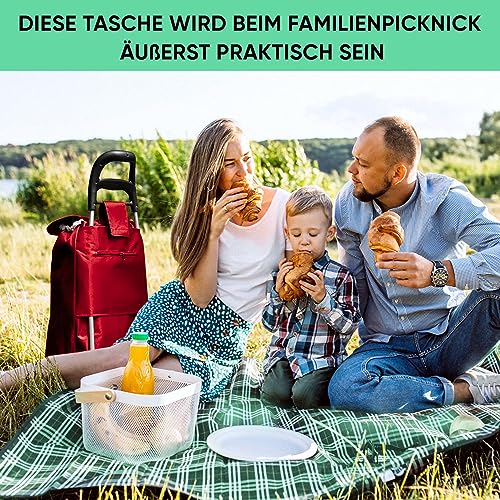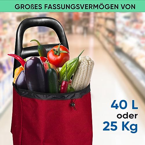 40 Liter Kapazität: Der Einkaufstrolley misst 92x32x21 cm und ist ideal anstelle Großeinkäufe. Hochwertige Konstruktion gewährleistet Haltbarkeit. Erhältlich in Schwarz, Rot und Hacke