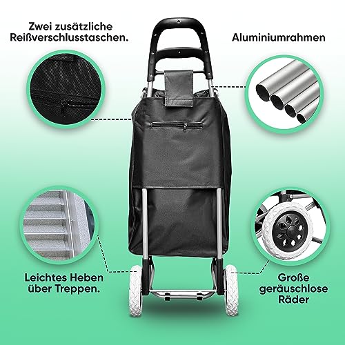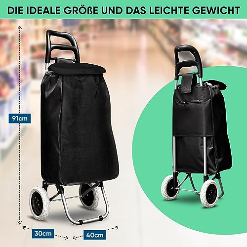 DS Lux Hocheffizienter Einkaufstrolley – 40 Liter Kapazität, 25 kg Belastbar, Verschließbare Reißverschlusstasche, Ergonomischer Griff, Platzsparend Zusammenklappbar. (Schwarz)