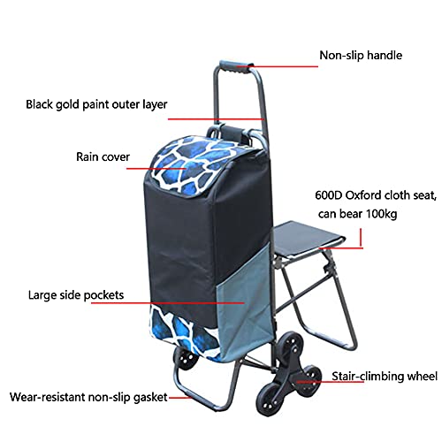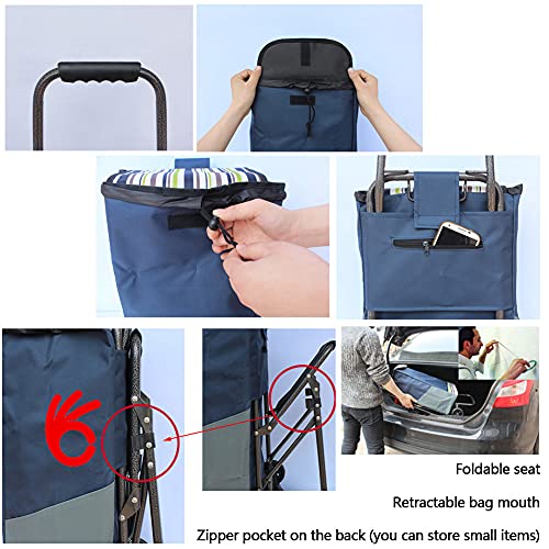 Einkaufsroller Stahlgriff 6 Räder Schwerlast 100kg Veranstalter 33L mit Sitz Faltbar Einkaufswagen Trolley-Tasche Abnehmbar Alten Treppen steigen Supermarkt Reisen Picknick Sackkarre