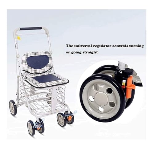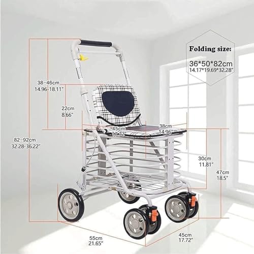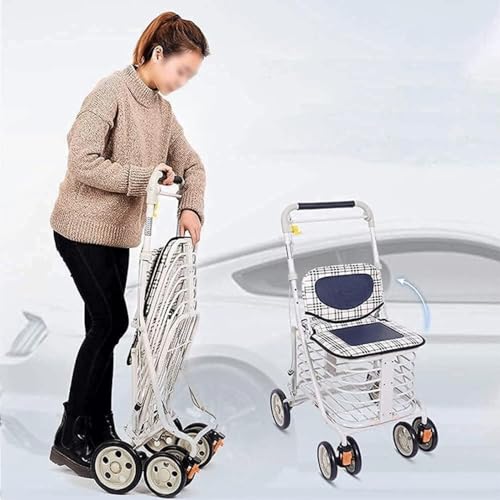 Einkaufstrolley aus Metall mit höhenverstellbarem Sitz für ältere Menschen, Einkaufstrolley, leichter Trolley, platzsparend