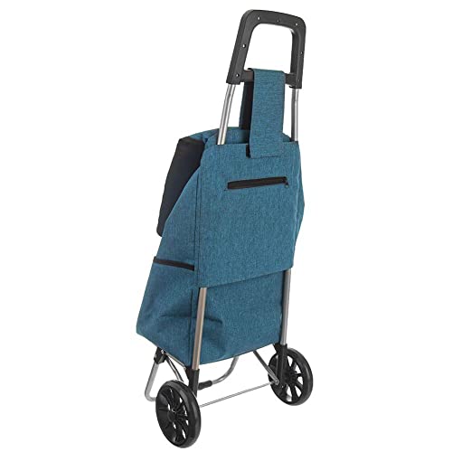 Einkaufstrolley Einkaufsroller Einkaufswagen mit Blauer Einkaufstasche auf Rollen geräumig 40l 30 kg