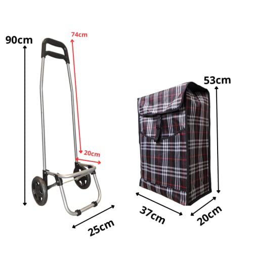 Stilvolles Design: Der Einkaufstrolley ist in einem karierten Design gehalten und verleiht Ihrem Einkaufsbummel eine stylische Postanschrift.
