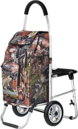 [Funktional und effizient] Verbesserter Klappsitz für Ausruhen beim Einkaufen oder bei Reisemüdigkeit; Die faltbare Einkaufstrolley-Tasche kann entfernt werden, um den Trolley versperrt zu verwenden.Und auf der Abseite befindet sich eine große Gesäßtasche mit Reißverschluss für Verstauen kleiner Dinge; 2x Seitentaschen können Regenschirme oder persönliche Gegenstände verstauen