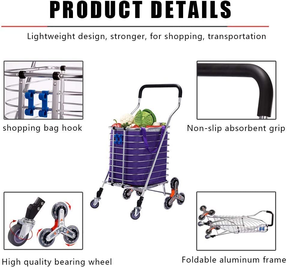 【Vorteil】: Rahmen und Zugstange aufgebraucht Aluminiumlegierung, geringes Gewicht, hohe Festigkeit, nicht leicht zu rosten, leichtes und tragbares Faltdesign, leicht zu verstreben, platzsparend, mittels abnehmbarer Einkaufstasche, doppelt gelagertem Verschleißrad, Stoßdämpfung und Bewegung,