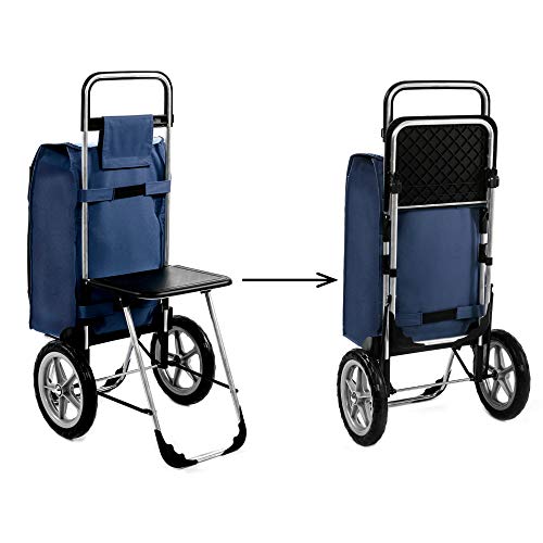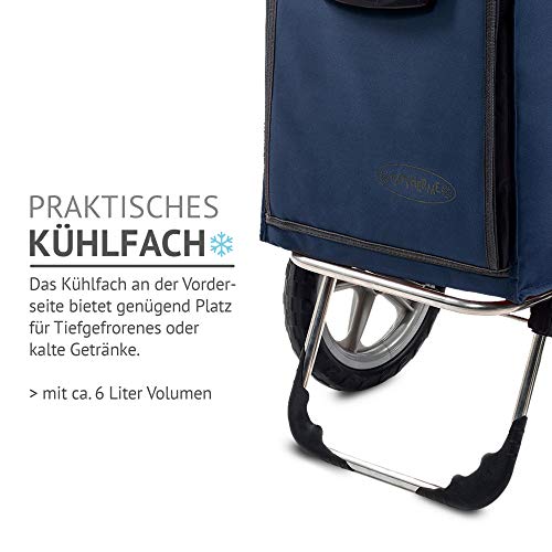 Einkaufstrolley Fajena blau mit Klappsitz & Kühlfach – 65 Liter Volumen – Einkaufsroller mit Sitz & großen, abnehmbaren…