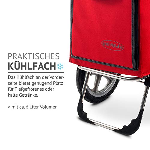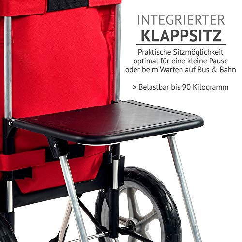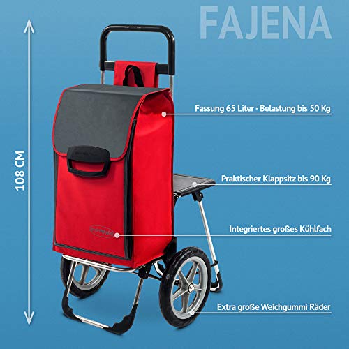 Einkaufstrolley Fajena mit Klappsitz & Kühlfach in rot mit 65L – Einkaufsroller Trolley 50kg belastbar große…