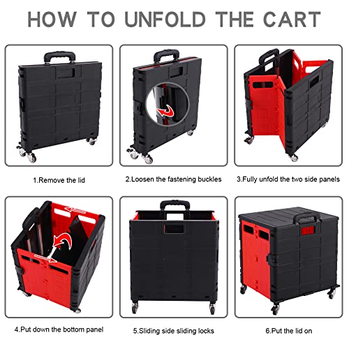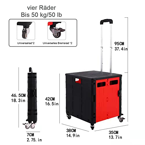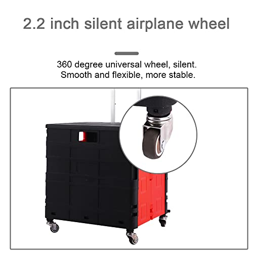 ★ 【Faltbarer und Teleskop Griff】 Dieser Rollwagen mit Rädern lässt sich auf 7,4 cm dick für eine kompakte Aufbewahrung zusammenklappen, die einfach in jedes Auto oder jeden Schrank passt. Der verstellbare Griff kann auf 2 verschiedene Längen ausgezogen werden und zieht einfache Lagerung ein, was sehr bequem für Sie zu tragen und zu transportieren ist.
