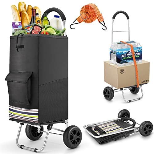 einkaufstrolley Mini-Gepäckwagen/tragbarer Einkaufswagen, leicht, faltbar, Teleskop-Zugstange, Silent Wheel, für…