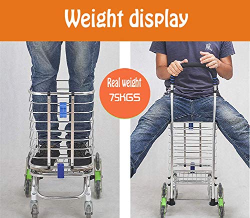 [Edelstahl Einkaufswagen] — Das stilvolle Design macht das Einkaufen haltbarer und komfortabler, geeignet für ältere Menschen oder Shopper. Verstellbarer Hebel für einfaches Drücken und Ziehen, keine Notwendigkeit, sich zu bücken, um Ihre Bedürfnisse zu erledigen. Der Einkaufswagen ist mit drei Radlagern und einem verstärkten Boden für ein einfaches Einkaufen ausgestattet.