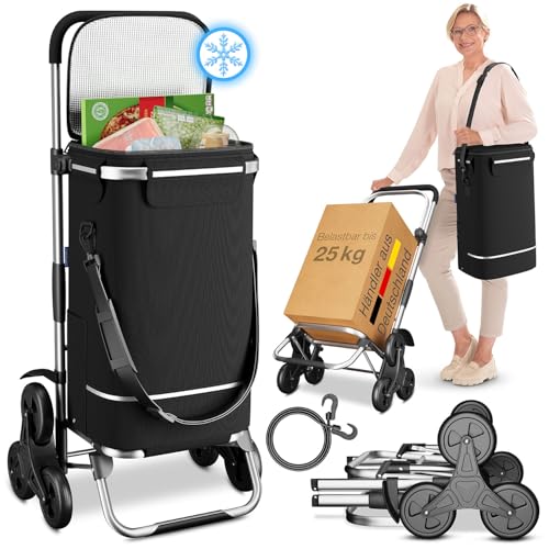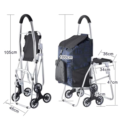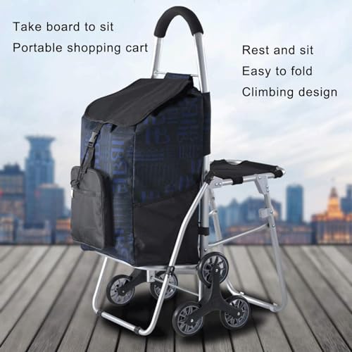Einkaufstrolley mit Sitz, tragbar, leicht, zum Treppensteigen, Handkarre, Einkaufstüte, 43 l