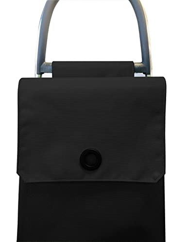Einkaufstrolley Rolser aus Aluminium mit 2/4 Rädern, der reichhaltig unnötiges Abschleppen erspart. Die Position mit zwei Rädern wird zum Hinterziehen des Einkaufstrolleys im leeren Zustand und die Position mit vier Rädern zum Schieben im beladenen Zustand empfohlen. Fahrgestell mit Arbeitslosenunterstützung vorne und faltbarem Fuß, das sich platzsparend verstauen lässt. Besonders angemessen zum Transportieren von kleinen Lasten. Perfekt für den Gang zum Waschsalon, für den Strand, zum Einkaufen, Angeln, für das Fitnessstudio und so weiter. Die Tasche AKANTO MF hat ein großes Fassungsvermögen und verfügt über eine Innentasche mit Reißverschluss, eine Öse am Überschlag, eine Reißverschlusstasche an der Abseite und ist mithilfe einer Schlaufe problemlos am Fahrgestell zu abstützen.