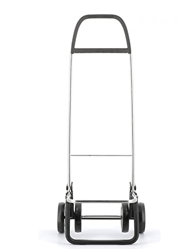 Einkaufstrolley Rolser aus Aluminium mit 2/4 Rädern, der das Schleppen von schweren Einkäufen erspart. Die Position mit zwei Rädern wird zum Hinterziehen des Einkaufstrolleys im leeren Zustand und die Position mit vier Rädern zum Schieben im beladenen Zustand empfohlen.