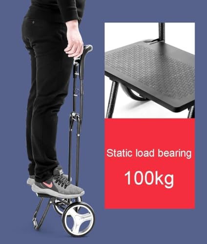 Einkaufstrolley XXL mit großen Fahrrädern – Extra großer Einkaufsroller Einkaufshilfe 70Kg Belastbarer Einkaufswagen aus Aluminium klappbar, Schwarz