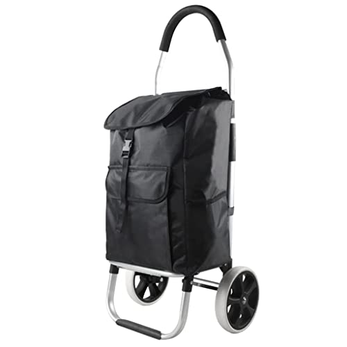 Einkaufstrolley, zusammenklappbar, wasserdicht, für Lebensmittel, Einkaufen, mit Rädern, tragbar, Schwarz 40 x 88 cm