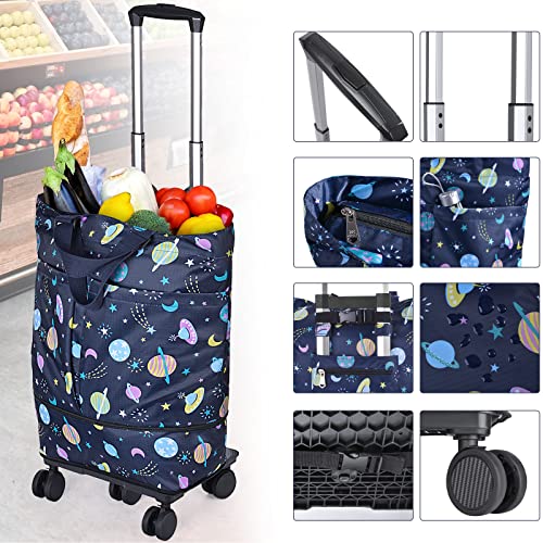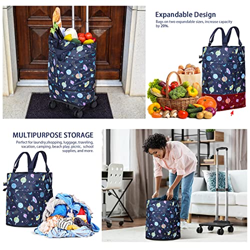 Einkaufswagen für Lebensmittel, Einkaufstrolley mit abnehmbarer erweiterbarer Einkaufstasche und 5 Drehrollen, faltbarer…