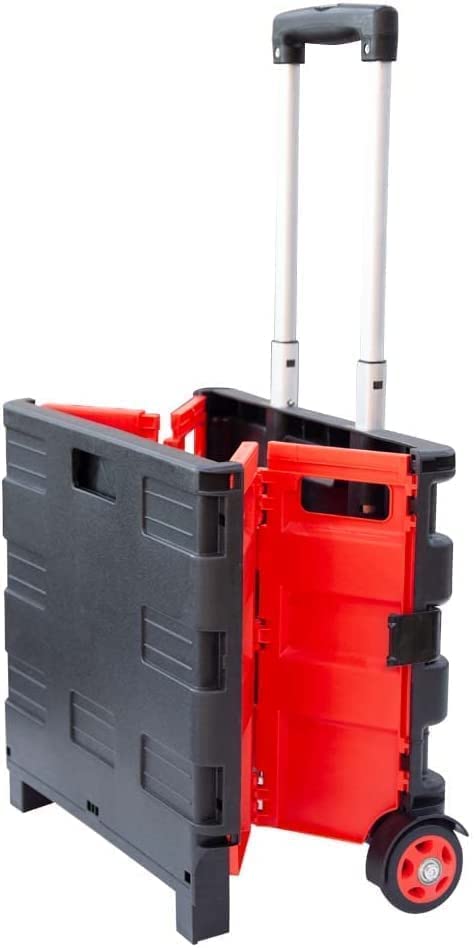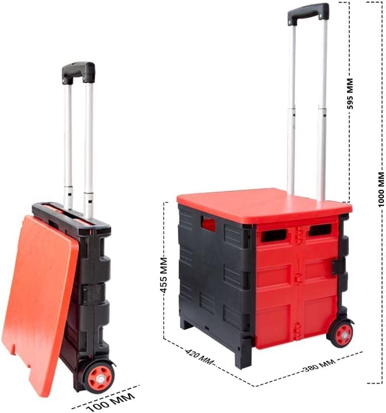 Einkaufswagen, zusammenklappbar, 35 kg, Rot und Schwarz, zusammenklappbar, mit Deckel, tragbarer Allzweckwagen mit Teleskopgriff