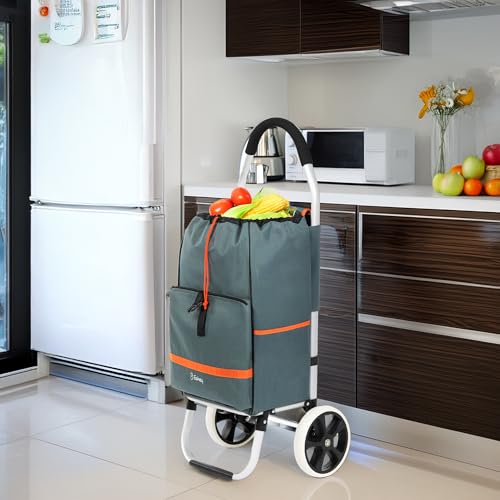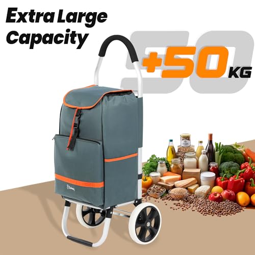 Eskey Einkaufstrolley mit Kühlfach – Robuster Einkaufstrolley klappbar faltbar – Wasserdichter Einkaufswagen – 50L (Cloud Gray)
