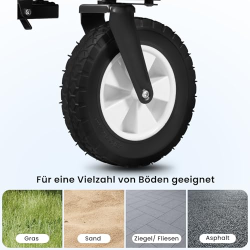 Der Bollerwagen besteht aus einem stabilen, pulverbeschichteten Stahlrohr-Gestell, stabil und faltbar. Ein praktischen Transportgerät für Haushalt und Garten.