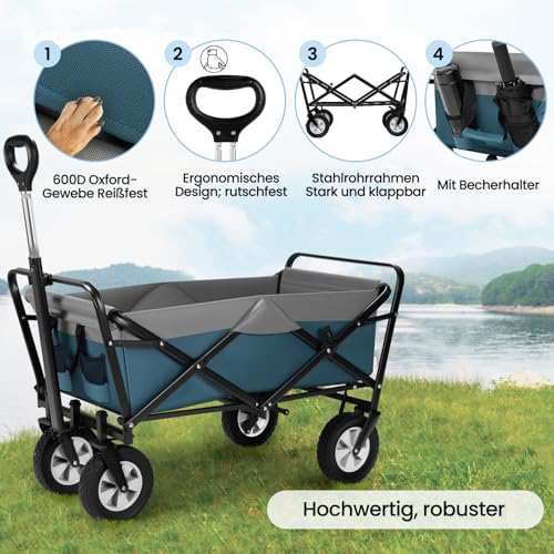 EUGAD Bollerwagen faltbar klappbar Transportkarre Handwagen mit 4 Rollen für Camping Einkaufen belastbar bis 80kg, Blau