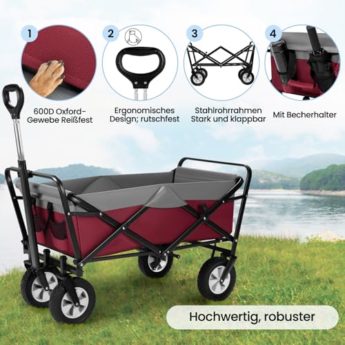 EUGAD Bollerwagen faltbar klappbar Transportkarre Handwagen mit 4 Rollen für Camping Einkaufen belastbar bis 80kg, Lila