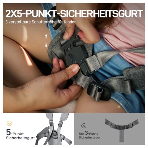 【Design für Sicherheit】Den europäischen Sicherheitsstandard EN-1888 bestanden und aus hochwertigem Polyestergewebe und hochbelastbarem Stahlrahmen hergestellt, die für Stabilität und Langlebigkeit sorgen. Ausgestattet mit 2×5-Punkt-Sicherheitsgurt und Fußbremse für maximale Sicherheit Ihrer Kinder. Zudem bietet das abnehmbare Dach mit UV 50+ zuverlässig Schutz vor Sonne und Regen.
