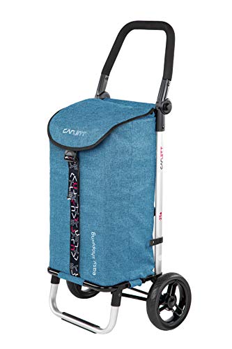 KLAPPBAR: FLACH GENUG FÜR SCHRANK & AUTO – Die Ziehwagen Bag wiegt handkehrum ca. 1 kg. Design Einkaufstrolli auf Rollen, ca. 94x37x30 cm, Alu-Gestell, Tragkraft ca. 20 kg. Zusammengeklappt 20 cm zutiefst.