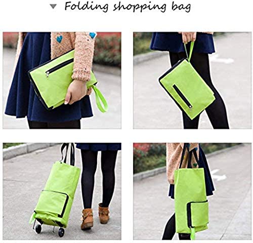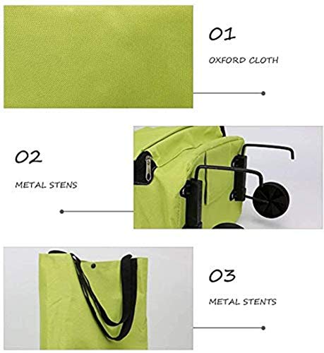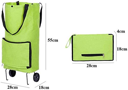 Anze Faltbare Einkaufstasche mit Rädern, leichter tragbarer Einkaufstrolley Faltbarer Einkaufswagen Wiederverwendbare Lebensmittel Einkaufstaschen Reise Hand in Hand Einkaufswagen, grün, 21.65 x 11.02