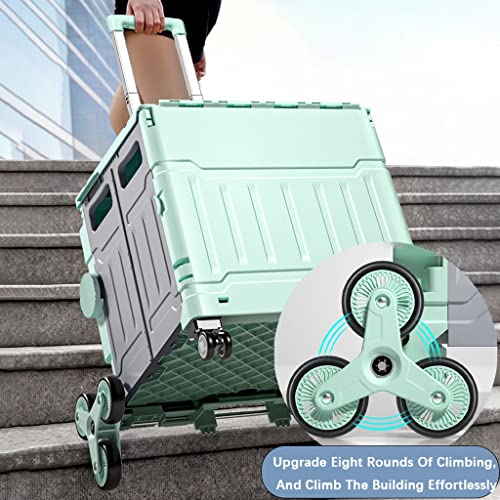 【8 Räder, praktischer】 Dieser Einkaufswagen für Lebensmittel verfügt über ein Paar speziell entworfene Treppen Kletterdreieck-Räder für Treppengebrauch, so dass Sie mühelos auf und ab Treppen klettern können. Es ist bequemer und arbeitssparender als ein traditioneller Trolley. Die 360° schwenkbaren Vorderräder mit Bremstasten können verhindern, dass der Trolley verrutscht, wenn er nicht benutzt wird.
