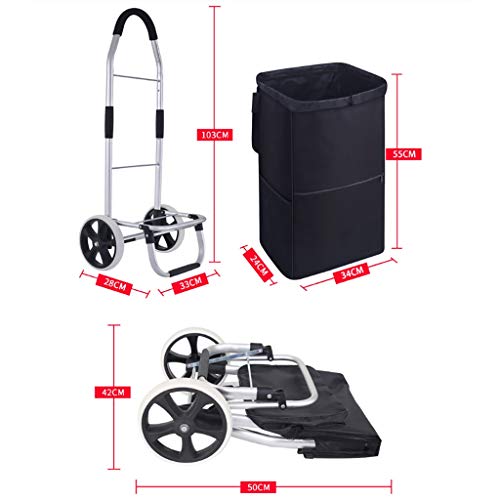 Faltbarer Einkaufstrolley mit 2 Rädern, Rahmen aus Aluminiumlegierung, wasserdichte Tasche, faltbares Design, 45 l Fassungsvermögen