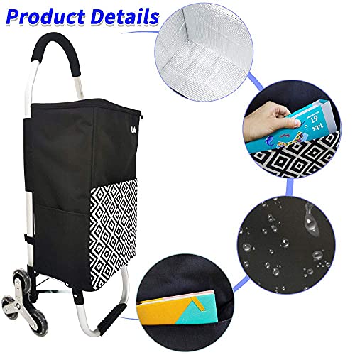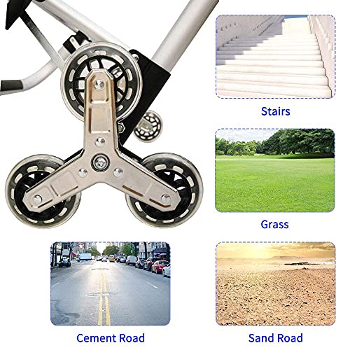 6 Räder Design: Dieser Einkaufswagen hat ein leichtgängiges 6-Rad-Design. Das hintere 6-Rad-Design erleichtert das Auf- und Nächtigen der Treppe, und das Bewegen auf Bordsteinen oder unebenen Da obendrein einfacher. Es ist gut für junge Menschen und ältere Menschen.