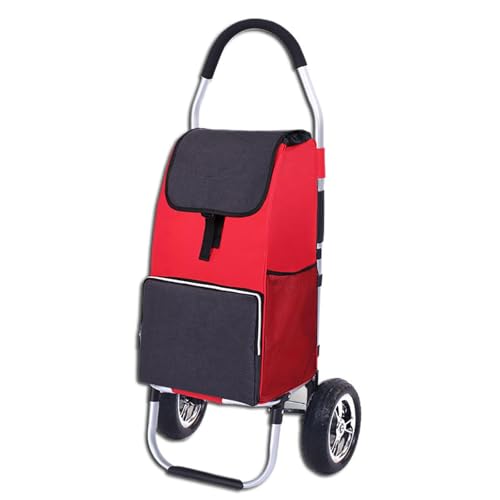 Faltbarer Einkaufswagen mit wasserdichter Tasche, leichter Einkaufstrolley auf All-Terrain-Rädern, perfekt für Camping, Einkaufen und Outdoor-Aktivitäten – Rot