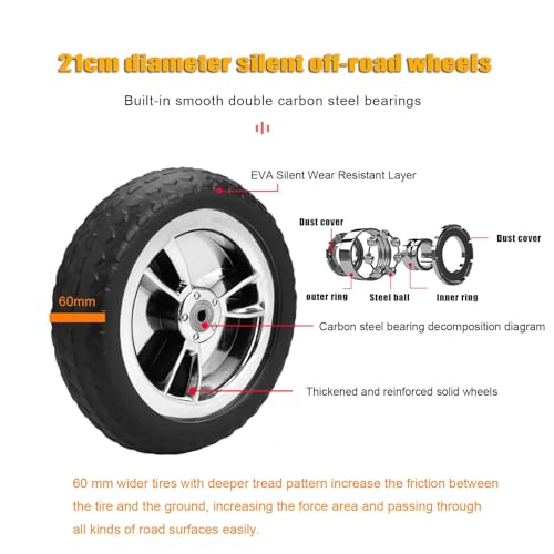 【Große Größe】 Mute Off-Road-Räder: Unser faltbarer Einkaufswagen ist mit EVA-Dämpfungsreifen mit 21 cm Durchmesser ausgestattet, die verschleißfest sind für eine lange Lebensdauer. Die massiven Räder und die glatten Doppel-Kugellager aus Karbonstahl bieten mühelose Manövrierfähigkeit auf verschiedenen Geländen, von Kieswegen bis hin zu Landstraßen, was ihn zu einem idealen Begleiter für all Ihre Einkaufsabenteuer macht.