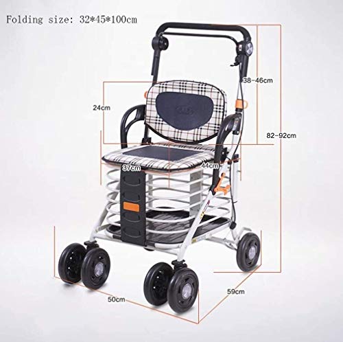 Faltbarer Rollator Walker, 4-Rad-Einkaufswagen, höhenverstellbarer, Leichter Push-Pull-Einkaufswagen, Gepäck…