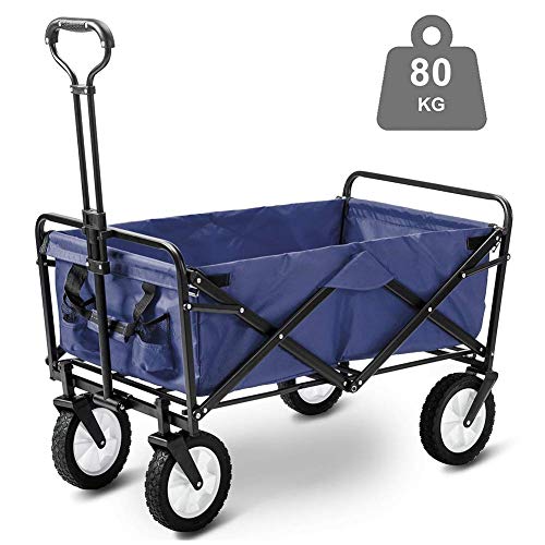 FAZENHUA Klappbarer Bollerwagen, zusammenklappbar, robuster Outdoor-Trolley, Transportwagen mit 80 kg maximaler Tragkraft, für Outdoor/Festivals/Camping, blau