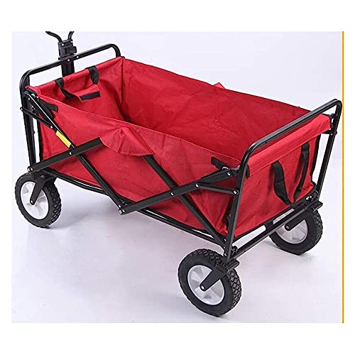 FAZENHUA Trolleys, 4 Räder, robust, faltbar, Gartentrolley, Wagen, Handschubkarre, Campingwagen, Gartenwagen, Gepäckwagen für den Außenbereich/Rot