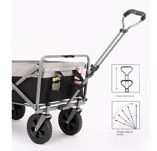 Verstellbarer Griff:Der Teleskopgriff ermöglicht eine einfache Kontrolle auf den meisten Untergründen,der Griff des Campingwagens kann in der Höhe verstellt und an unterschiedliche Körpergrößen der Personen konzertiert werden,die den Wagen schieben.