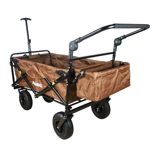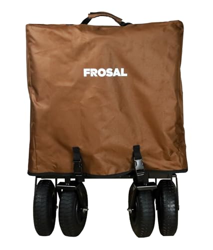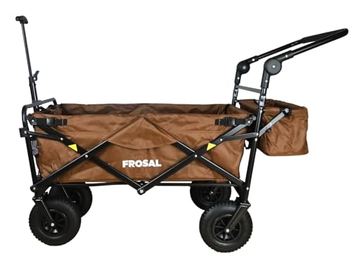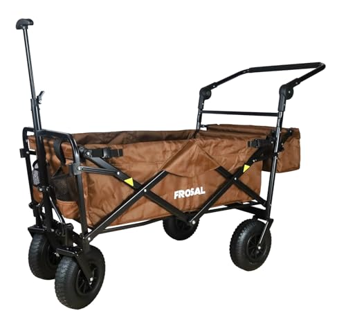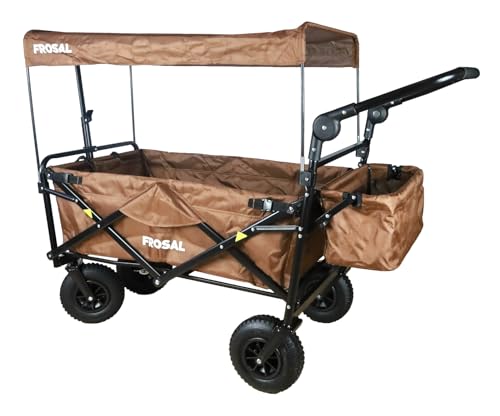 FROSAL Bollerwagen faltbar Nick PRO braun Luftreifen Sonnendach Kinder Bremse Handwagen Strand & Wald zum ziehen und schieben